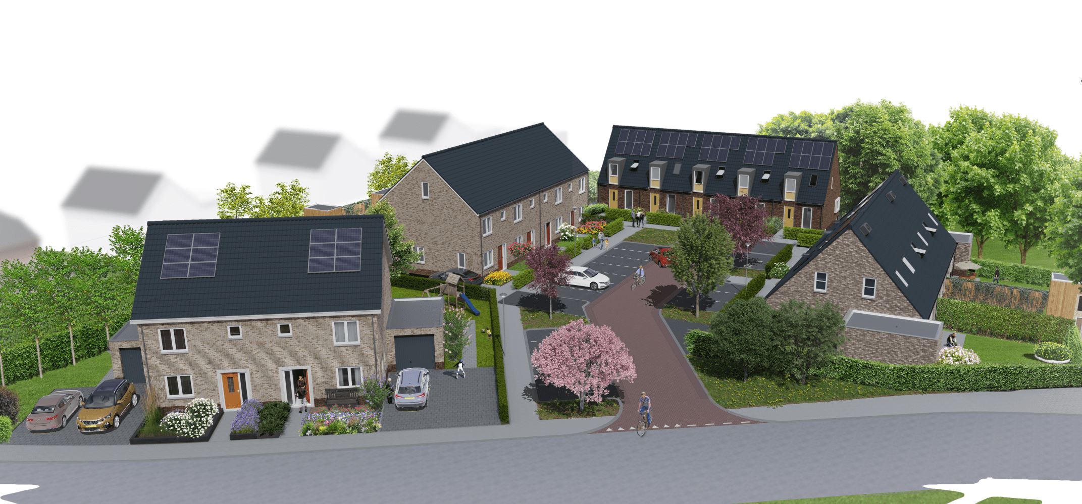 Medio april 2024 zijn de veertien woningen in Den Nul opgeleverd. Dit gezellige hofje heeft verschillende type woningen; van starters tot senioren! Het betreft 2 geschakelde woningen, 4 rijwoningen, 5 starterswoningen en 4 seniorenwoningen.