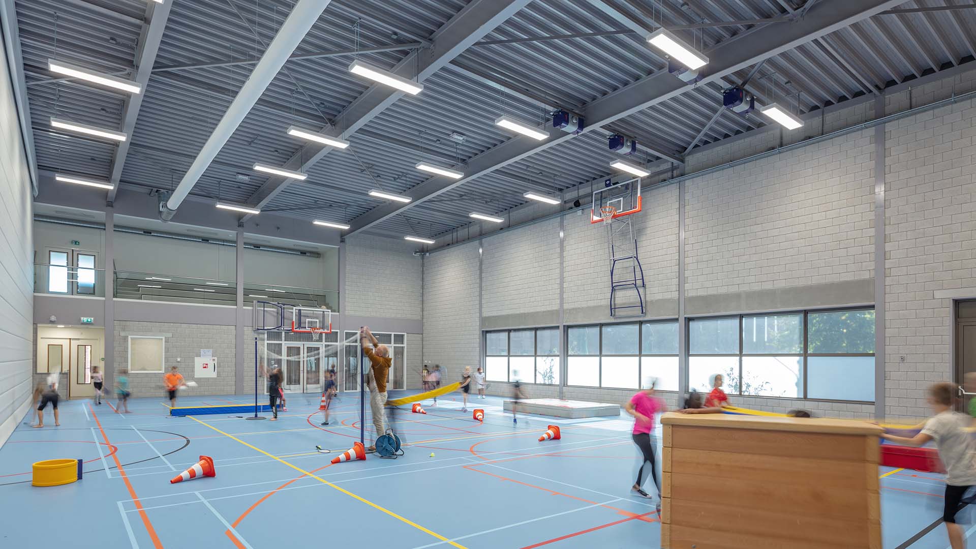 De polderpionier-architectuur van stoere metselwerk blokken en lange lijnen is als inspiratie voor het ontwerp gebruikt. De sportzaal en multifunctionele ruimtes zijn als een groot rechthoekig blok met aanvullende organische vormen als contrast. De bestaande (kerk)toren is blijven staan.